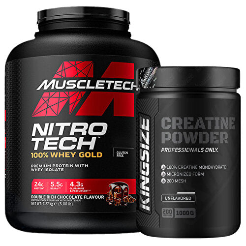 Muscletech Nitro-Tech 100% Whey Gold Protein 2270 Gr + Kingsize Nutrition Creatine Powder Combination