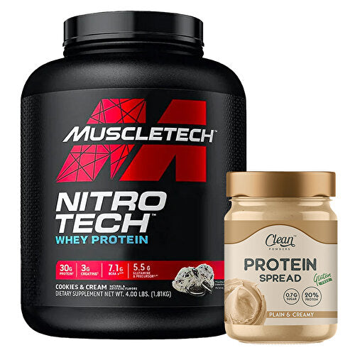 Muscletech Nitro-Tech Whey Protein 1814 Gr + Clean Powders Protein Spread Hazelnut Cream Combination