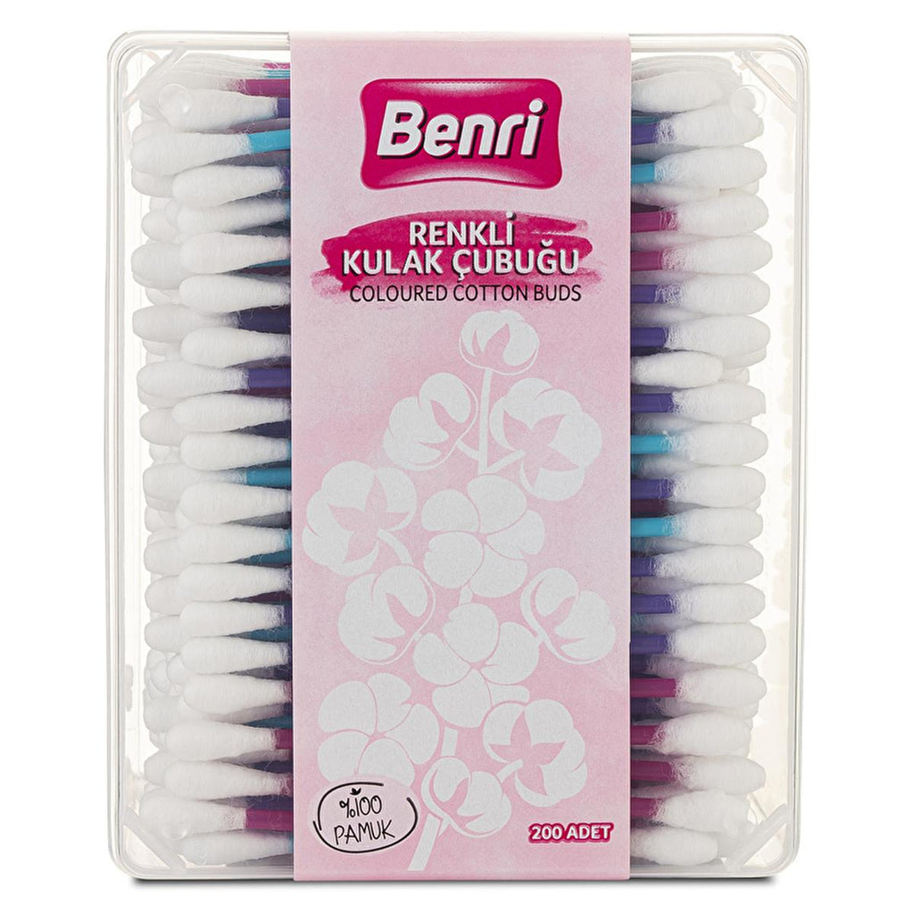 Benri Colorful Ear Cleaning Swabs - 200 Count of 100% Cotton for Gentle Care | Personal Care and Hygiene
