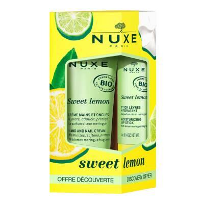 Nuxe Sweet Lemon Hand Cream & Lip Balm Set: Moisturizing Hand & Lip Care with Refreshing Lemon Scent
