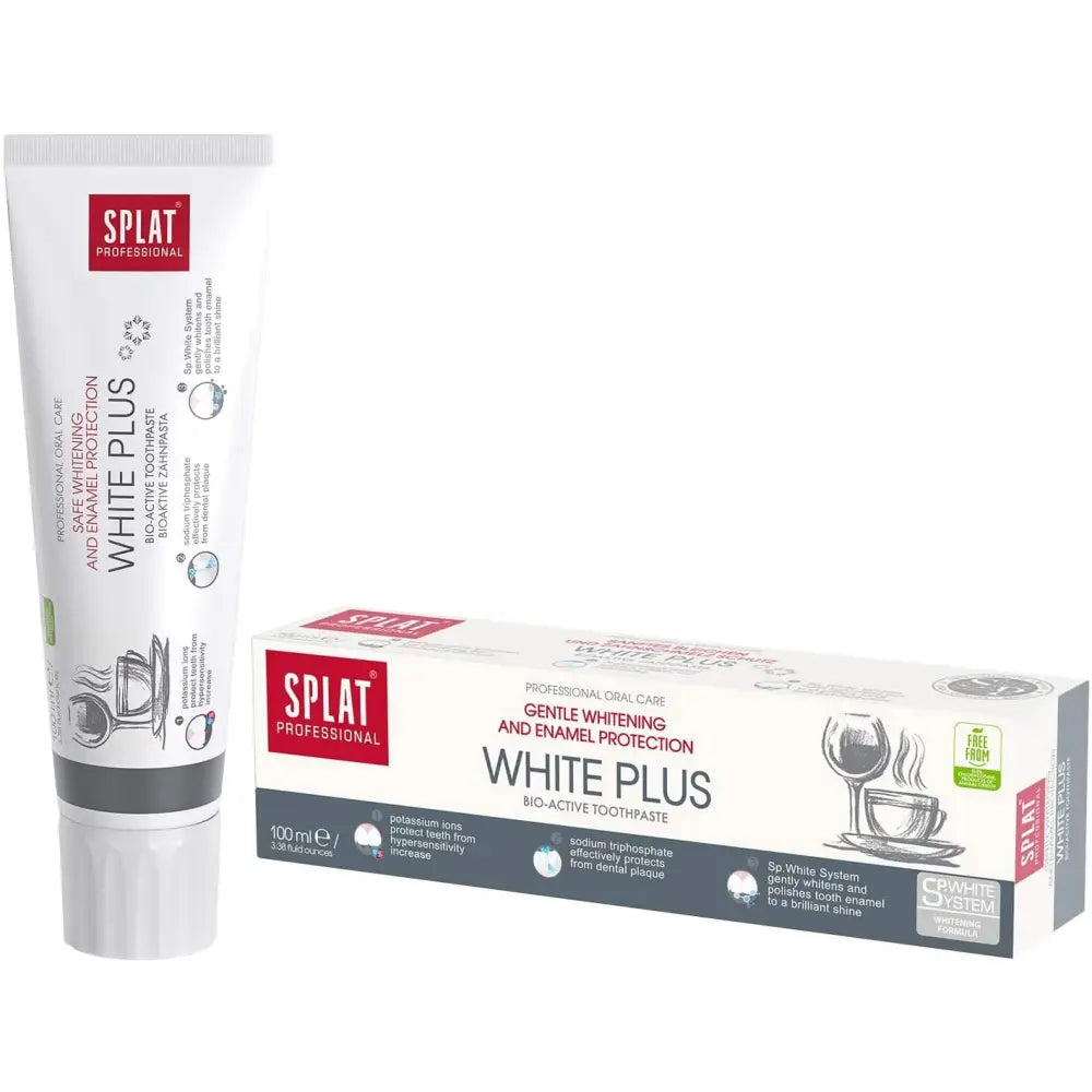 - Professional Toothpaste Splat "White Plus". Safe Whitening and Enamel Protection.